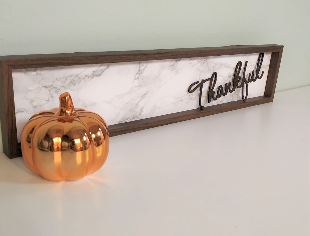 This DIY thankful wood sign makes a great display for fall and Thanksgiving. Easily make your own farmhouse sign or tray with items from the dollar store.
